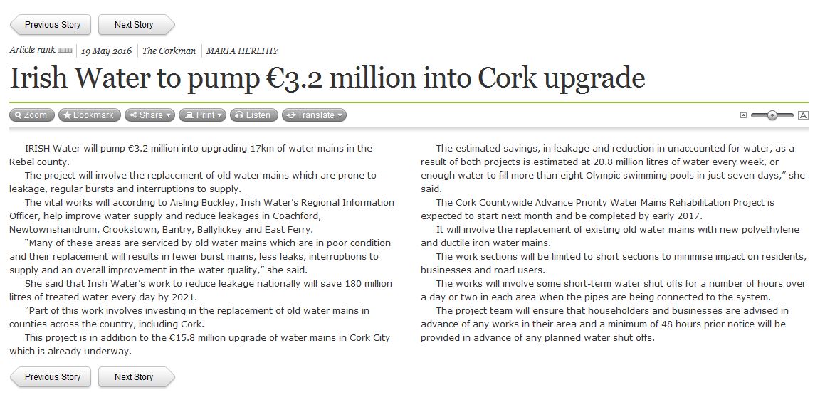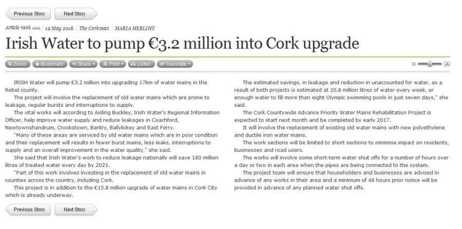 Irish Water article Corkman May 16